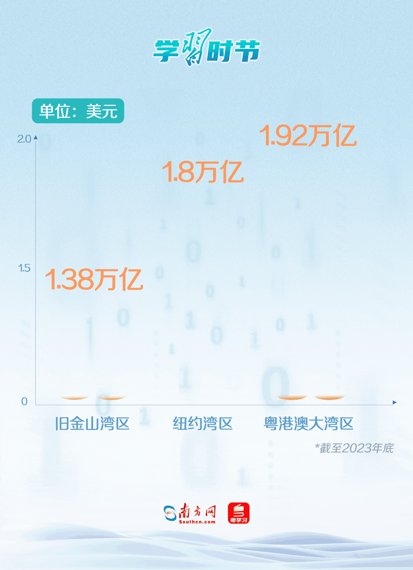 截至2023年底,大湾区经济总量突破14万亿元人民币(约合1.92万亿美元),成为中国经济最具竞争力和最具活力的区域之一,入列全球湾区第一梯队;