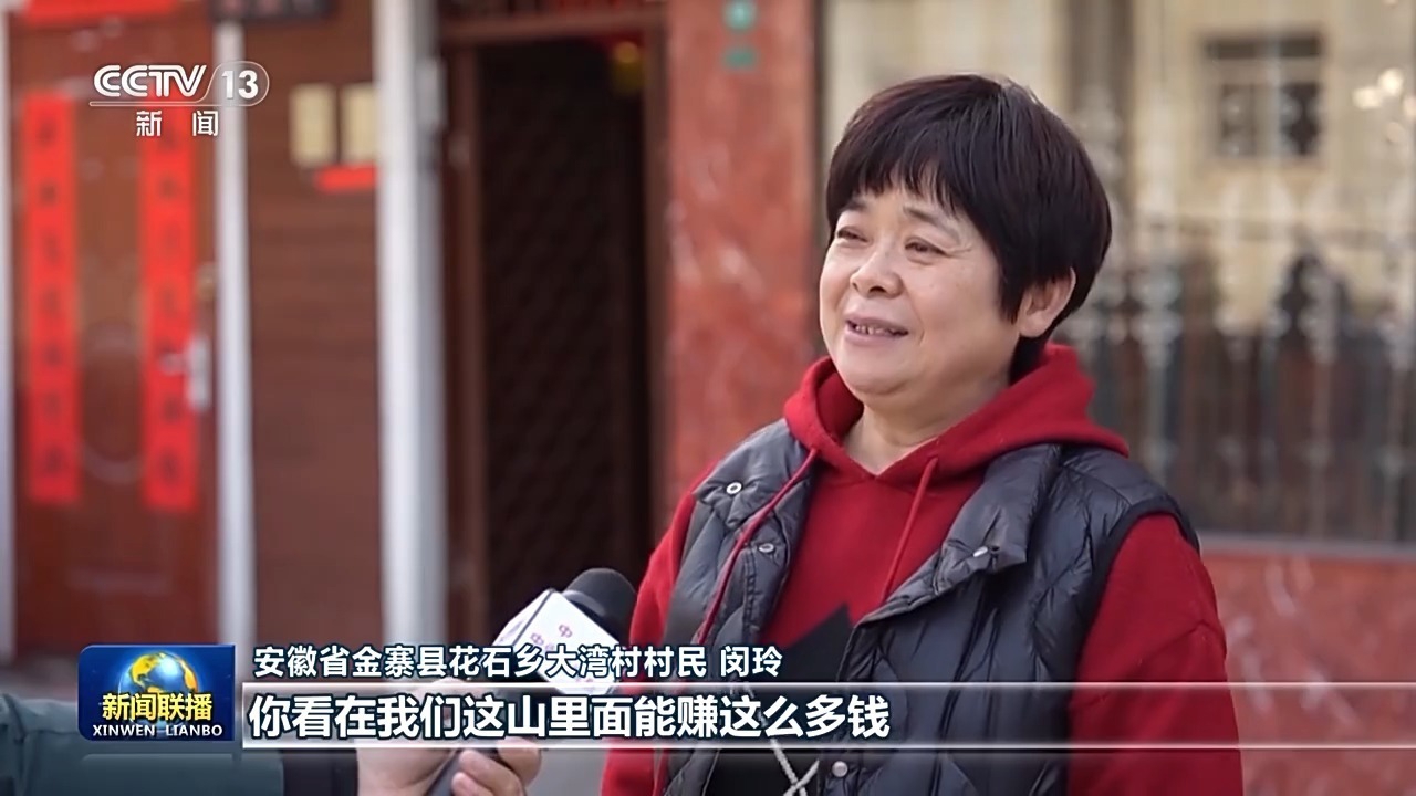 安徽省金寨县花石乡大湾村村民 闵玲:以前根本没想到待在农村,现在我很满足,你看在我们这山里面能赚这么多钱,这真不敢想的。