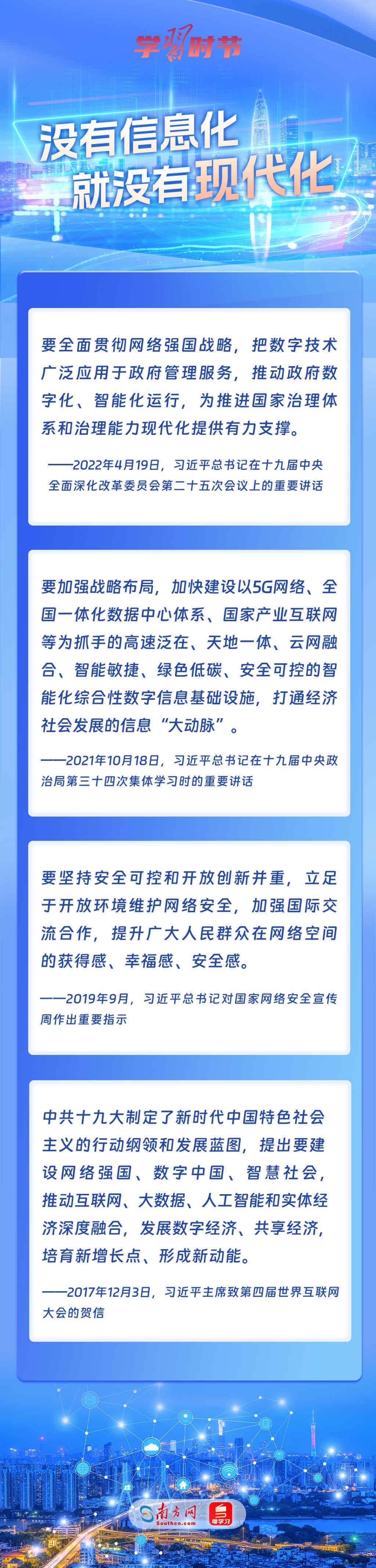 党的十八大以来,习近平总书记从信息化发展大势和国内国际大局出发,就网络安全和信息化工作提出一系列具有开创性意义的新理念新思想新战略,形成了习近平总书记关于网络强国的重要思想。其中,有不少生动形象的表述,深入人心,发人深省,让我们一起学习。