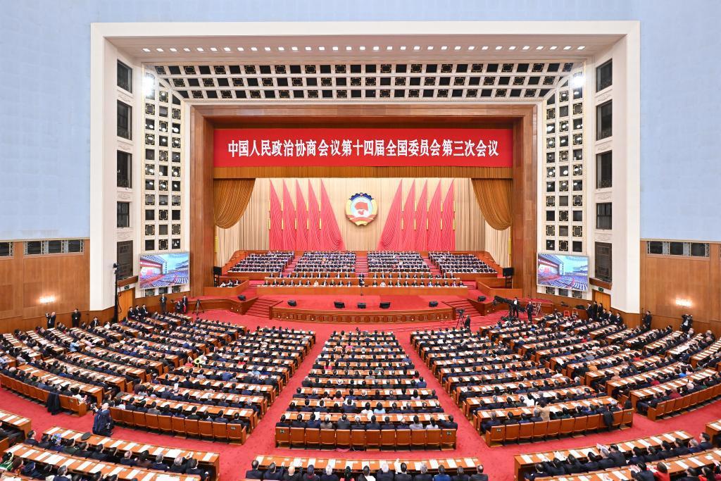 3月10日上午,中国人民政治协商会议第十四届全国委员会第三次会议在北京人民大会堂闭幕。新华社记者 岳月伟 摄