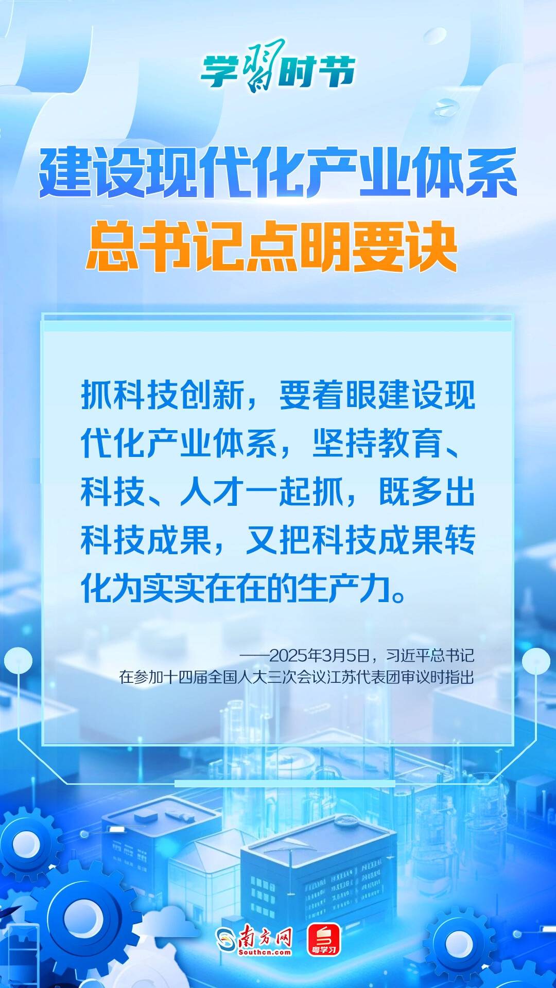 “抓科技创新,要着眼建设现代化产业体系,坚持教育、科技、人才一起抓,既多出科技成果,又把科技成果转化为实实在在的生产力。”3月5日,习近平总书记在参加他所在的十四届全国人大三次会议江苏代表团审议时为建设现代化产业体系点明要诀,引领中国经济在高质量发展的轨道上劈波斩浪、坚定向前。