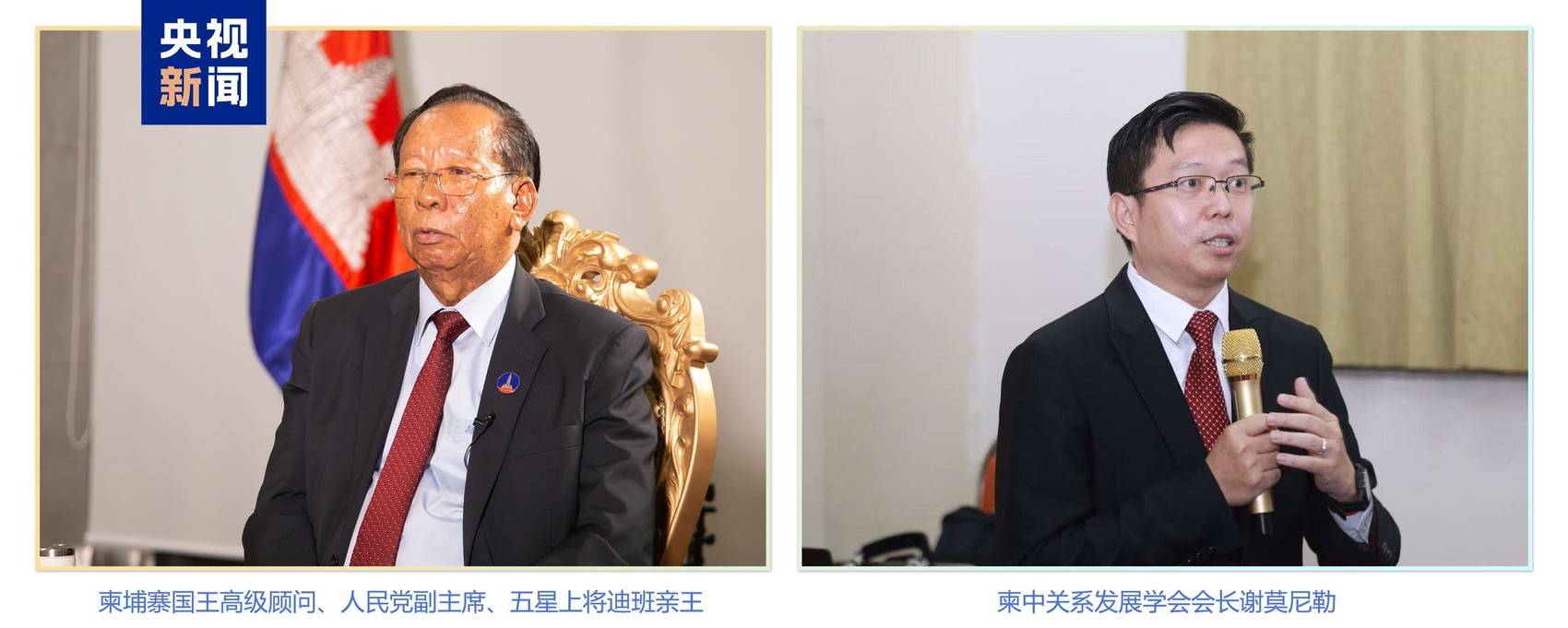 柬埔寨国王高级顾问、人民党副主席、五星上将迪班亲王,柬中关系发展学会会长谢莫尼勒在采访中对节目播出表示期待,盛赞全球治理的中国方案。