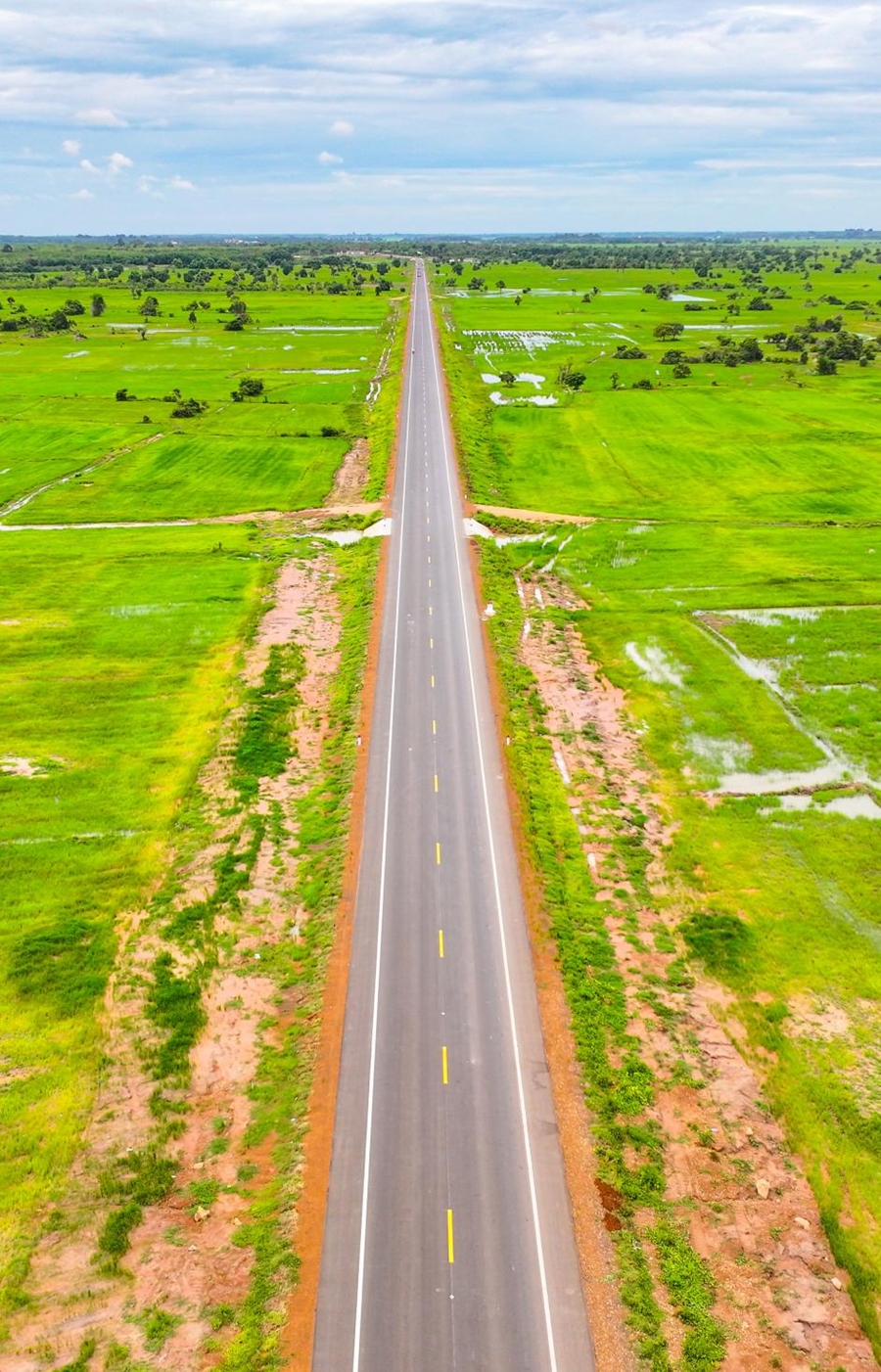 这是2024年7月14日在柬埔寨特本克蒙省拍摄的71C号国家公路(无人机照片)。新华社发(尼多拉摄)