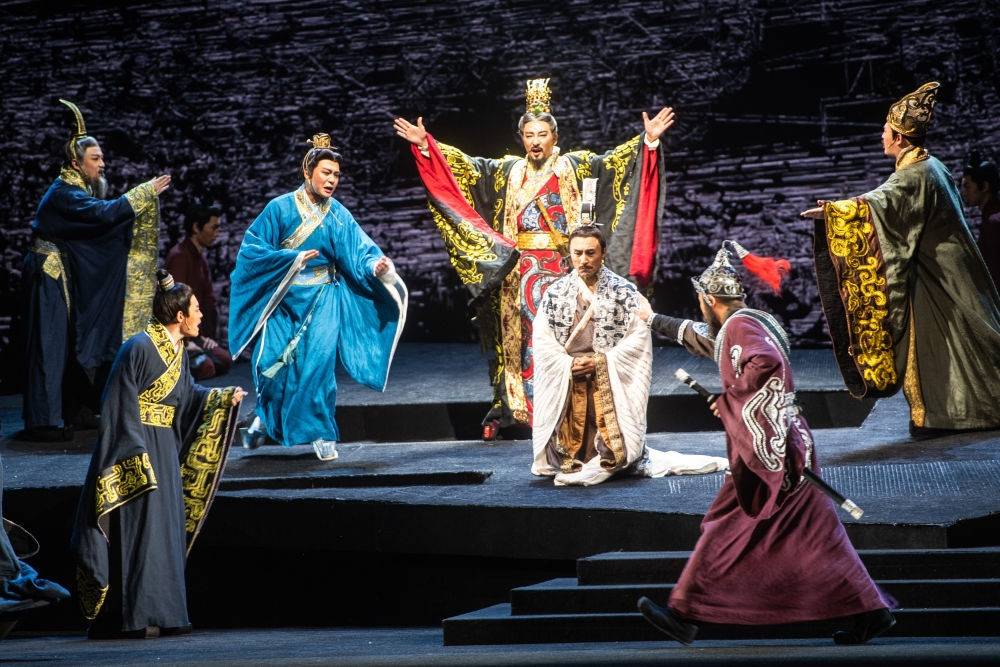 2023年4月8日,首届楚文化节在湖北荆州开幕。文化节设计了楚史展览、楚艺大观、楚戏汇演、楚肆赶集、楚地寻游5大版块,及楚王车马阵出土文物展、荆楚非遗秀等一系列子活动,展现楚文化的深厚内涵和时代魅力。这是演员在开幕式上表演节目。