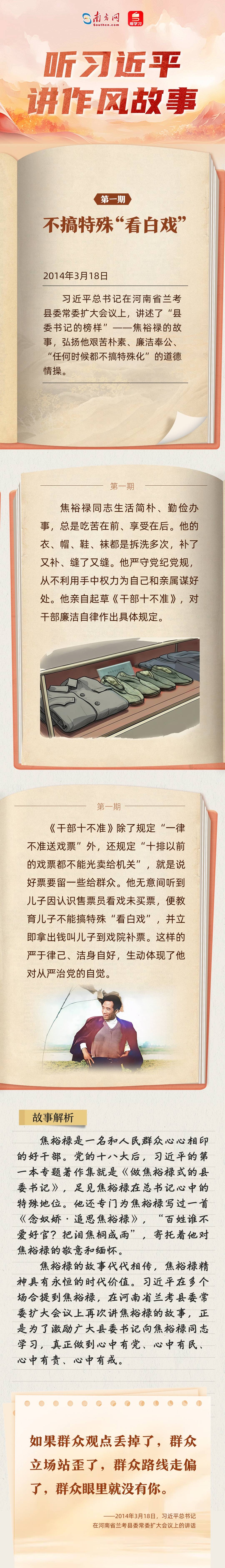 今天,推出第一期《听习近平讲作风故事丨不搞特殊“看白戏”》,与您一起学习焦裕禄同志的故事。