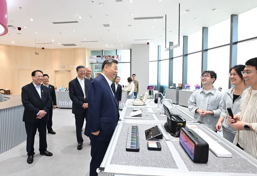 这是习近平在位于徐汇区的上海“模速空间”大模型创新生态社区,察看大模型产品展示。