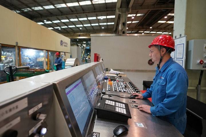 工作人员在太钢不锈钢精密带钢有限公司车间作业(2023年10月24日摄)。新华社记者 詹彦 摄