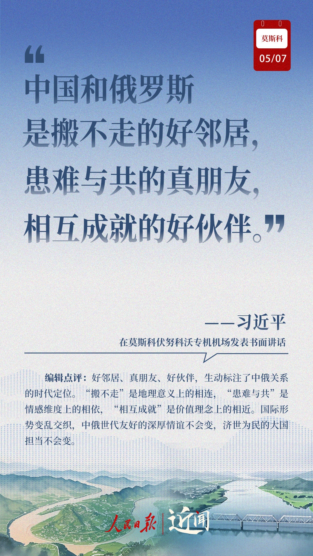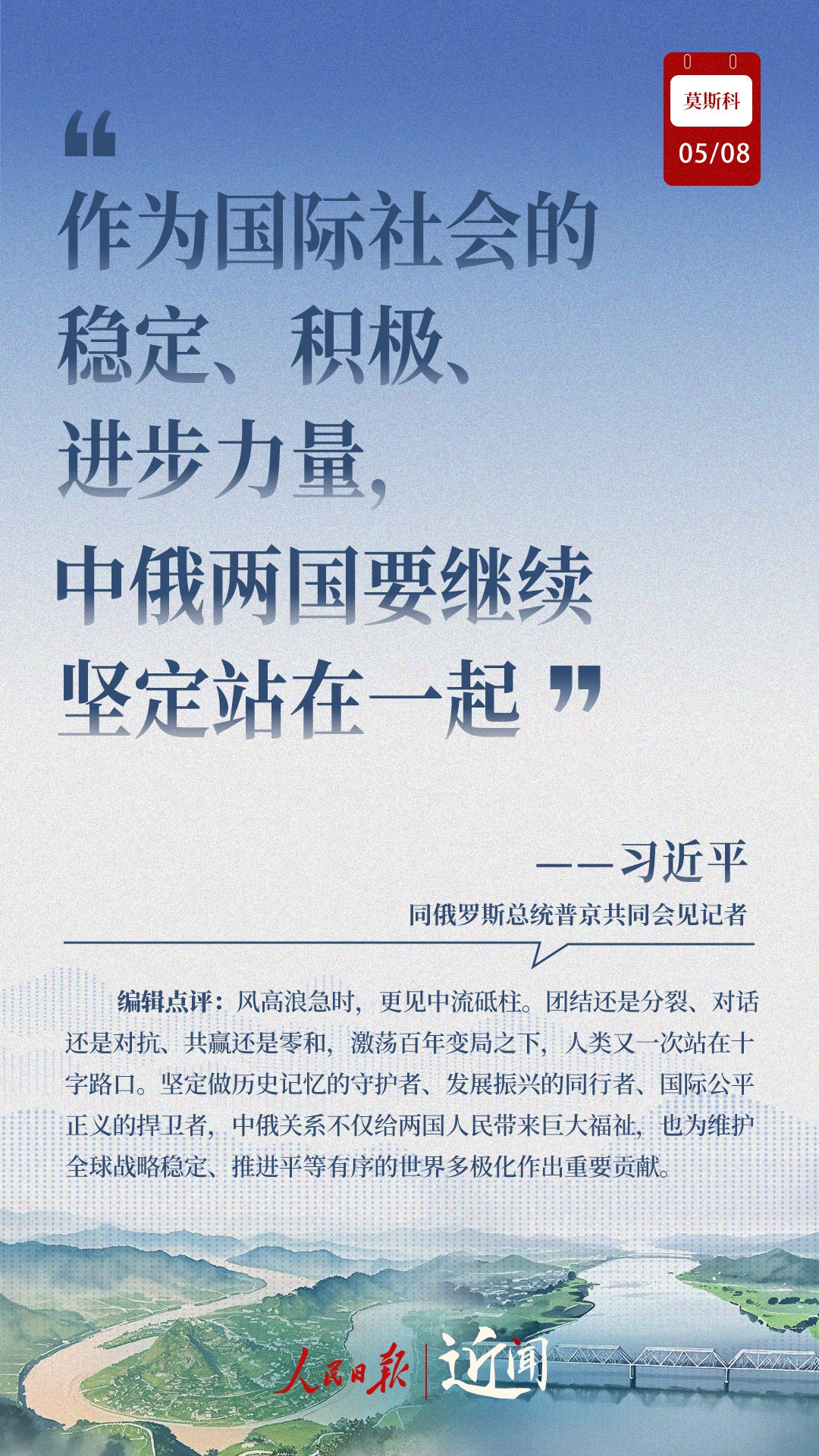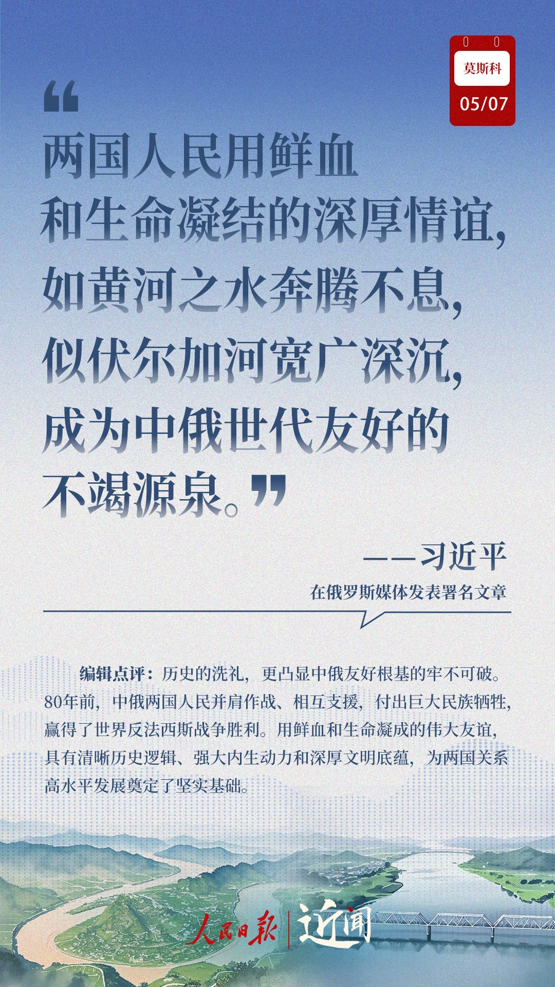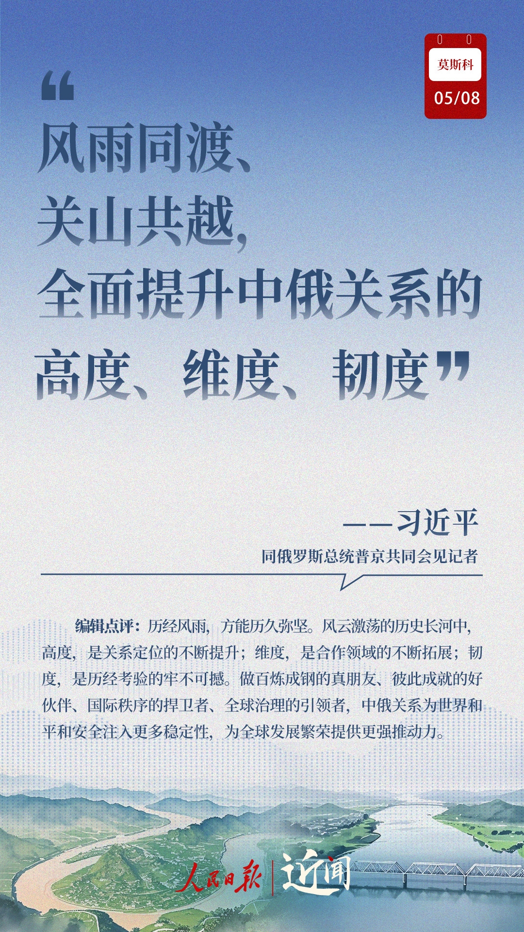 做百炼成钢的真朋友、彼此成就的好伙伴、国际秩序的捍卫者、全球治理的引领者,在纪念中国人民抗日战争、苏联伟大卫国战争胜利和联合国成立80周年之际,中俄新时代全面战略协作伙伴关系进一步深化。