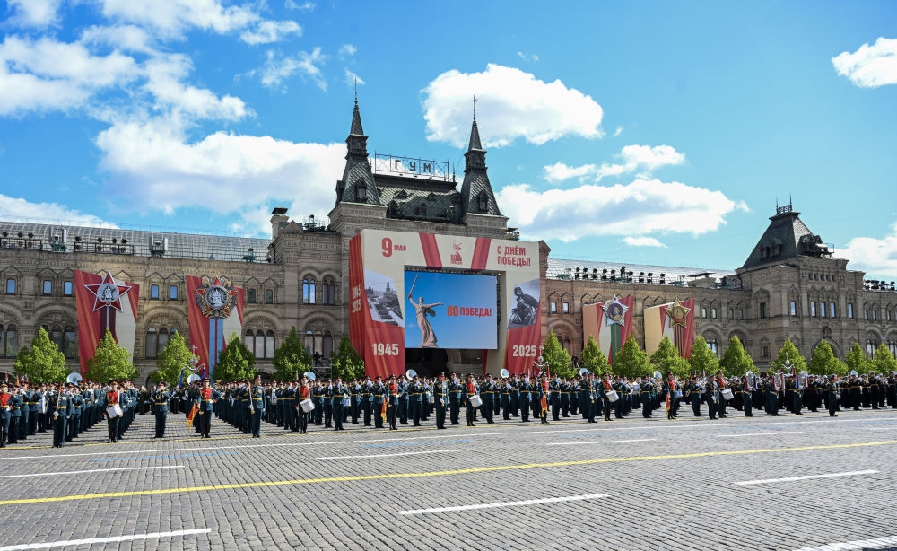 5月的莫斯科,绿意盎然,鲜花盛开,胜利日旗帜迎风招展,恢宏的红场一片庄严的盛典气氛。