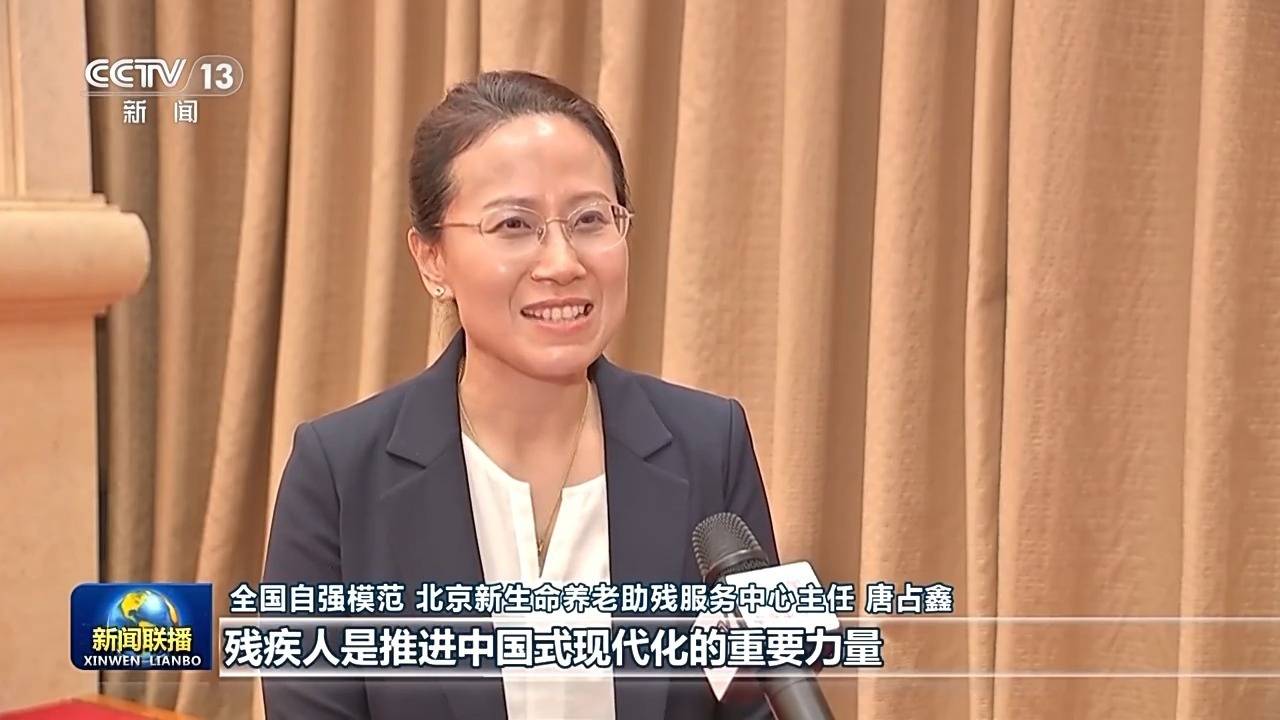 全国自强模范 北京新生命养老助残服务中心主任 唐占鑫:习近平总书记指出,残疾人是推进中国式现代化的重要力量,也是需要格外关心、格外关注的特殊困难群体。肯定了我们的能力,又指出了我们的特殊性,让我们感觉特别温暖。未来我们要带动更多的残疾朋友通过自助互助的方式,实现生活自理、就业增收,让更多人看到残疾人的能力。
