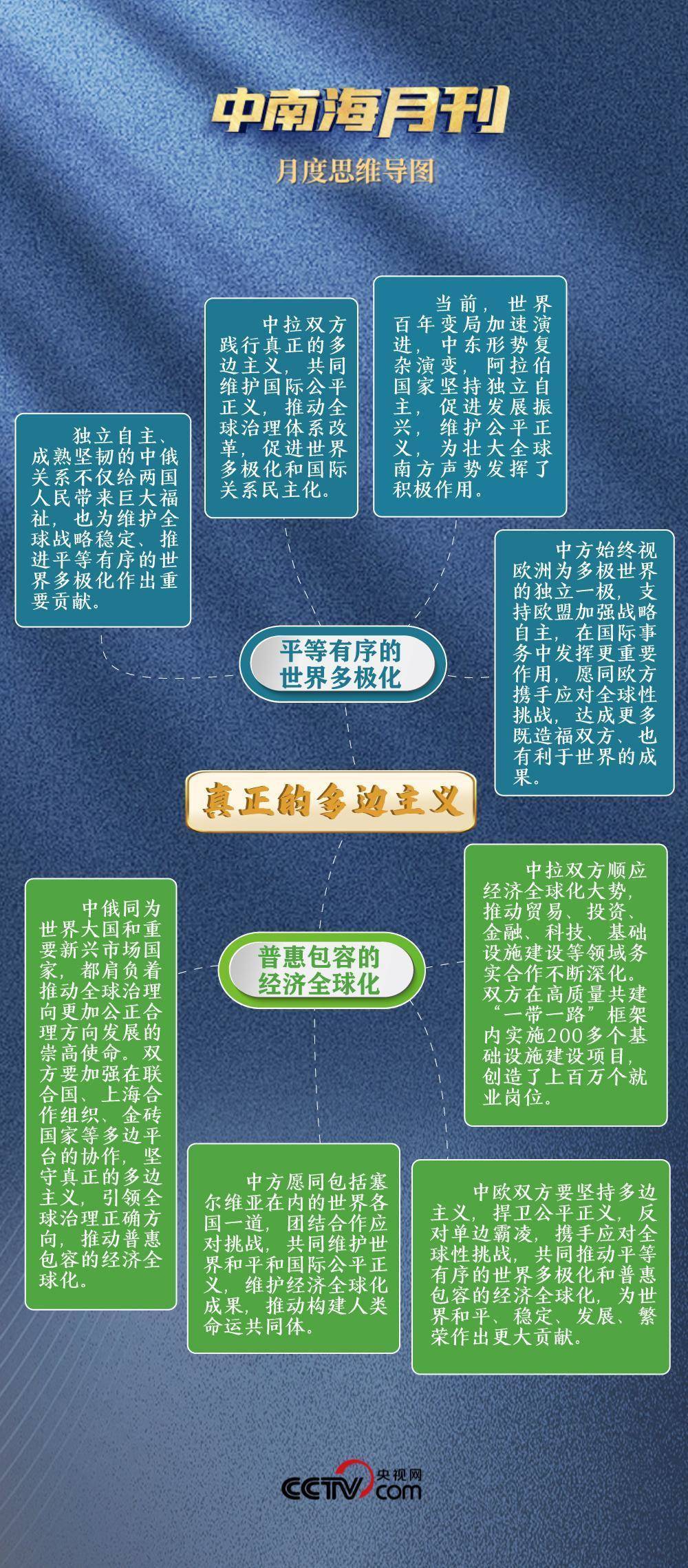面对单边主义逆流,坚定不移推动平等有序的世界多极化。不为一时一事所惑,不为风高浪急所扰,与俄方达成“共同弘扬正确二战史观,维护联合国权威和地位,维护国际公平正义”的共识;与欧盟“深化战略沟通,增进理解互信,巩固伙伴定位”;同拉方携手启动团结、发展等五大工程,推动中国同全球南方国家相互支持、团结合作。