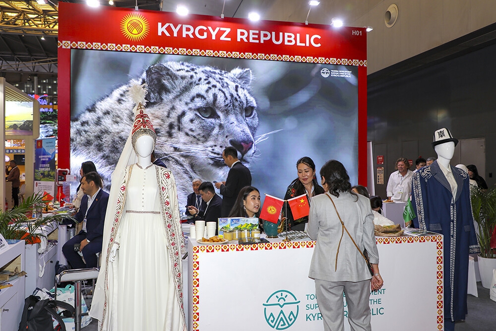 △ 2025年5月27日,2025上海国际旅游交易博览会在世博展览馆举行。图为吉尔吉斯斯坦旅游展台。