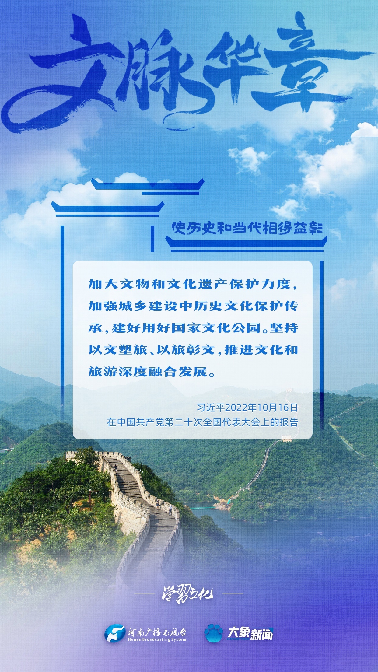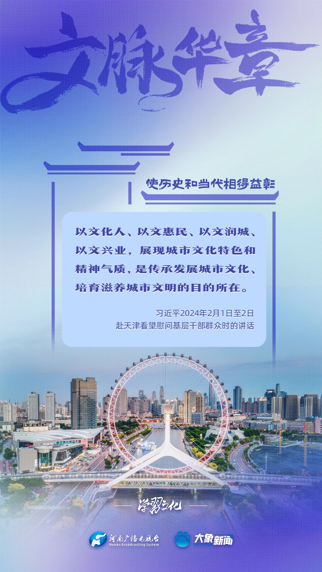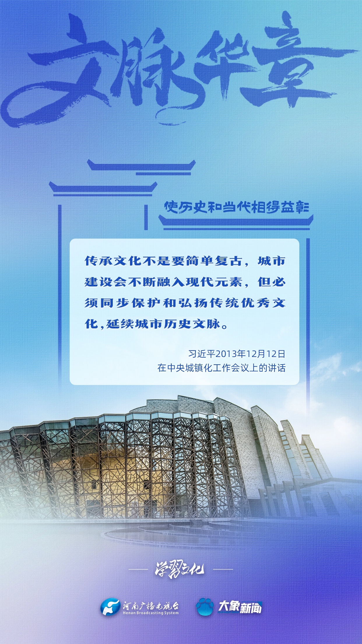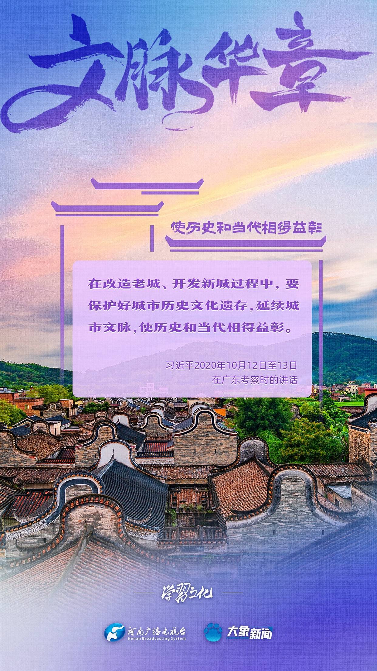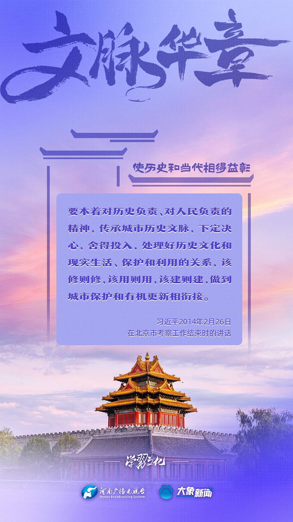 习近平总书记非常注重城市发展中的文脉赓续,多次强调“要结合区域文化、历史传承、时代要求,打造城市特色风貌”“使历史和当代相得益彰”等等,着力引导各地各部门完善历史文化保护传承体系,完善城市风貌管理制度,保护城市独特的历史文脉、人文地理、自然景观。大象新闻为您梳理,我们一起学习。