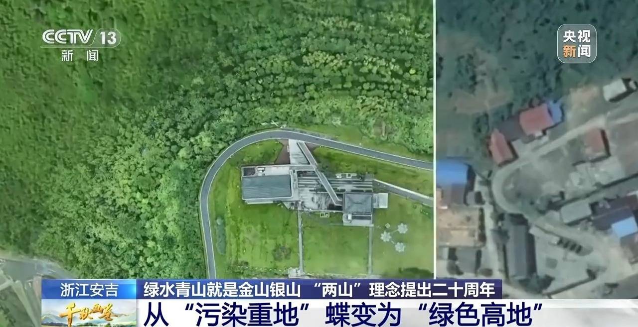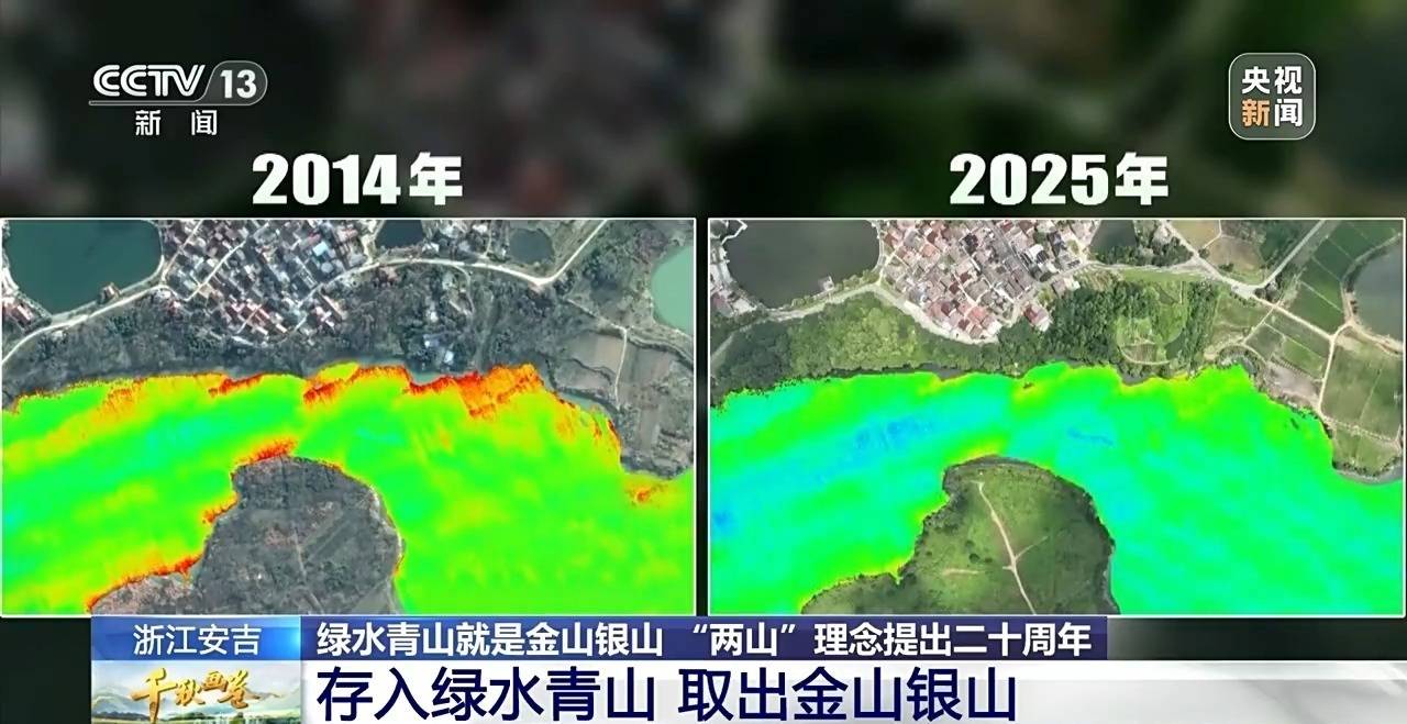 卫星从太空捕捉到更多变化,曾经安吉最大的石灰岩矿坑,复绿改造后,变成了有山有水的生态度假区,高峰时一天卖出8000多杯咖啡,相当于当年开采矿产时将近一年的收入。