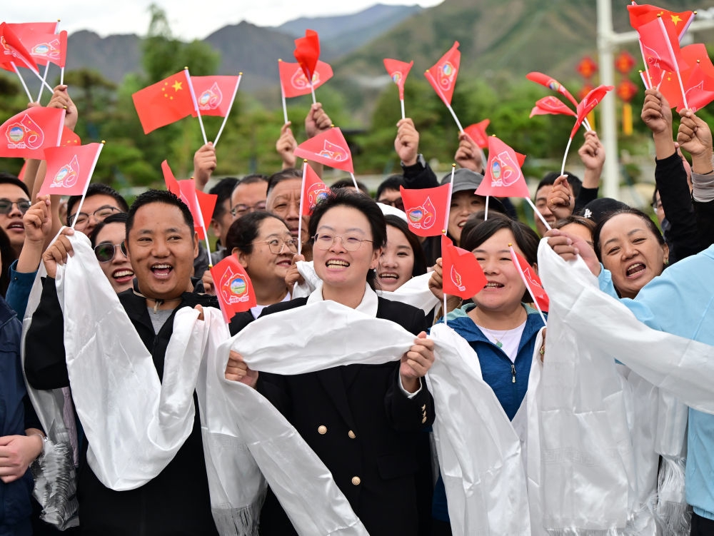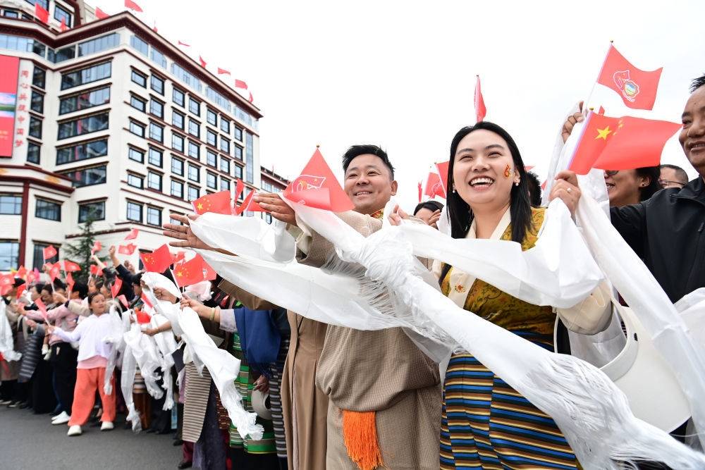 中共中央总书记、国家主席、中央军委主席习近平率中央代表团20日中午乘专机抵达拉萨,出席西藏自治区成立60周年庆祝活动。习近平等在机场和拉萨市区受到西藏各族群众的热烈欢迎。