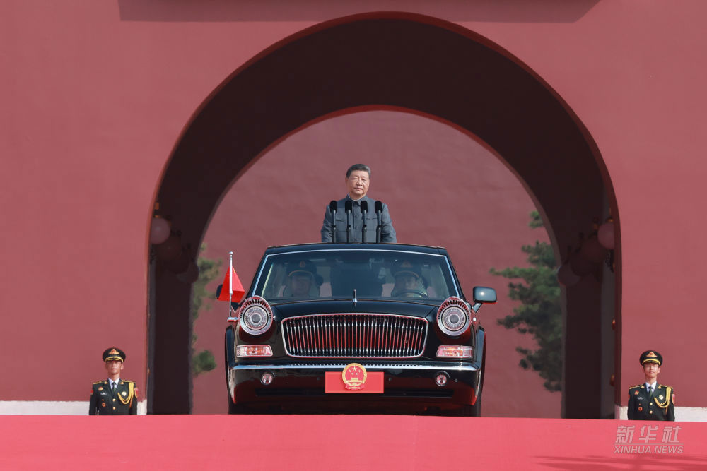 9月3日上午,阅兵仪式开始。习近平乘红旗检阅车,经过金水桥,驶上长安街。