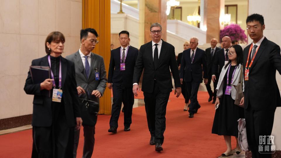 △塞尔维亚总统武契奇抵达人民大会堂。(总台记者李晋拍摄)