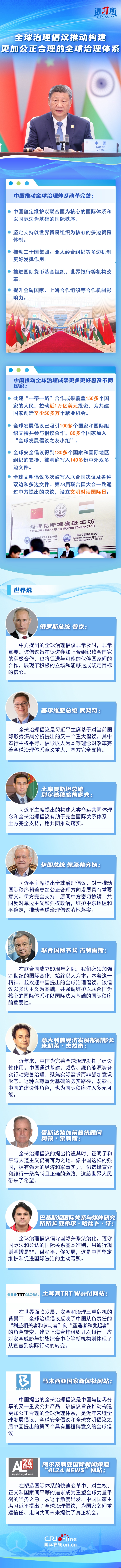 “我愿提出全球治理倡议,同各国一道,推动构建更加公正合理的全球治理体系,携手迈向人类命运共同体。”上合组织天津峰会期间,中国国家主席习近平正式提出全球治理倡议,深刻阐释这一倡议“奉行主权平等、遵守国际法治、践行多边主义、倡导以人为本、注重行动导向”的核心理念,是新时代中国为国际社会提供的又一重要公共产品。