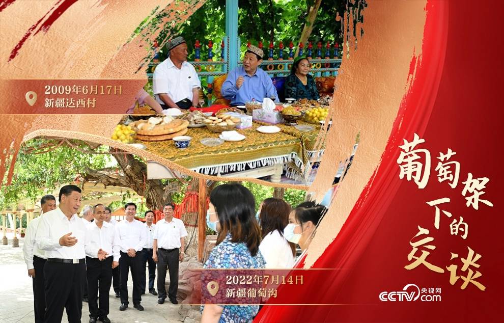 这段对话,发生于2022年7月14日。那天下午,习近平总书记来到新疆吐鲁番的葡萄沟,与来自天南海北的游客亲切交谈。