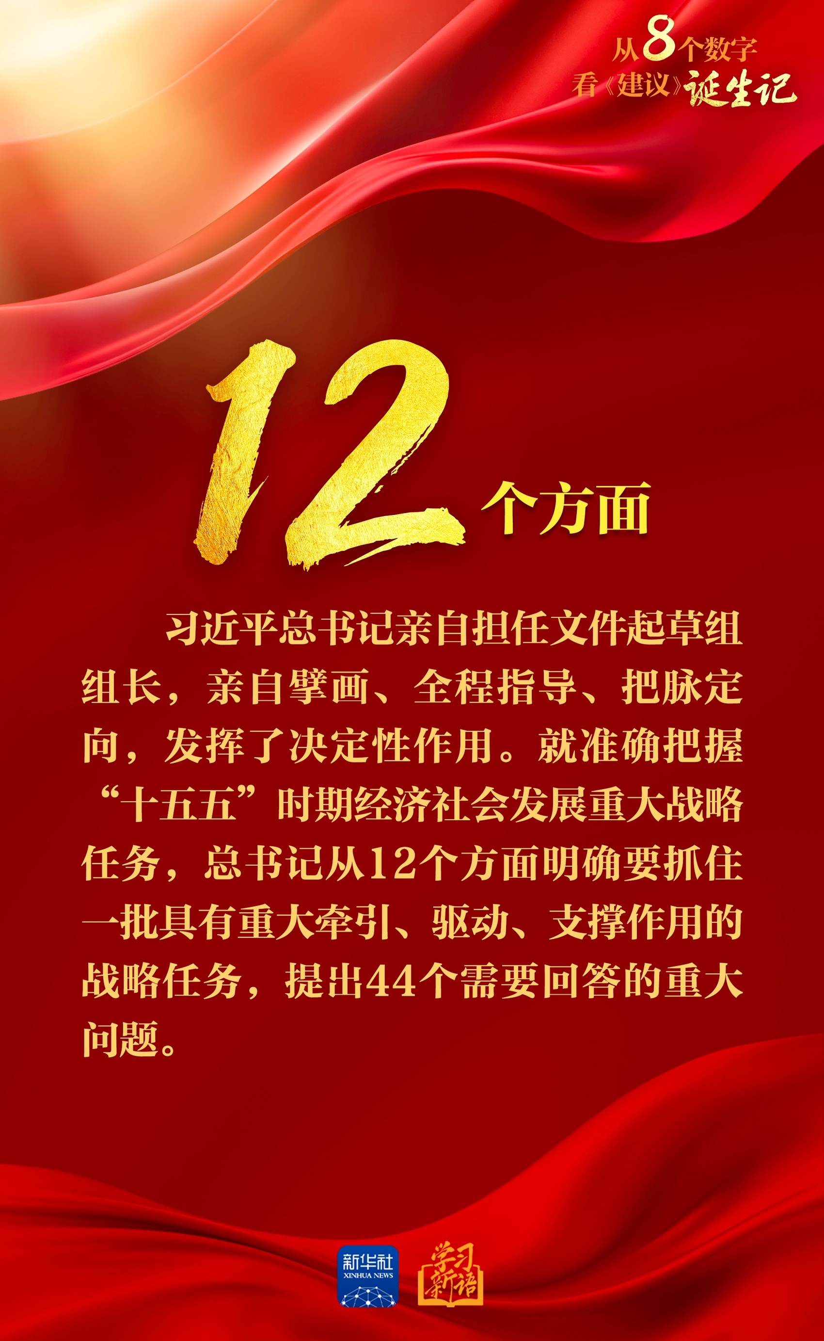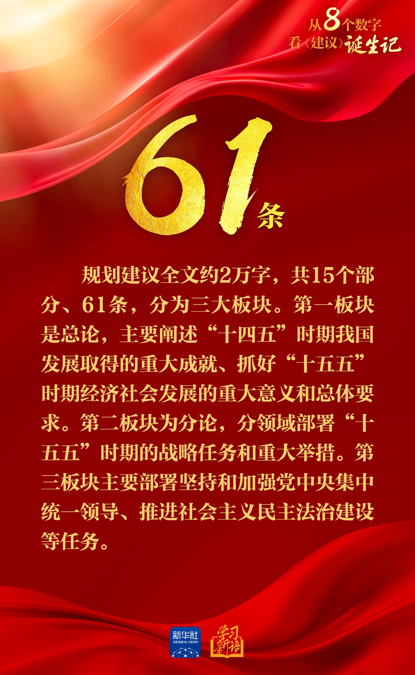 今天,新华社播发通讯《为基本实现社会主义现代化奠定更加坚实的基础——<中共中央关于制定国民经济和社会发展第十五个五年规划的建议>诞生记》。通过一组数字,一起来看这份纲领性文件是如何诞生的。