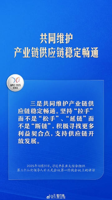 【共建普惠包容的开放型亚太经济,习近平提出中国主张】10月31日上午,习近平出席亚太经合组织第三十二次领导人非正式会议并发表重要讲话。#这就是中国主张#,一起学习↓↓#拉手而不是松手延链而不是断链##2025APEC#