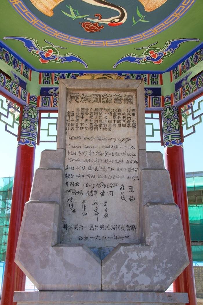 如今,普洱民族团结誓词碑静静矗立在云南省普洱市宁洱哈尼族彝族自治县民族团结园内,它被誉为“新中国民族团结第一碑”,成为了普洱民族团结的象征。