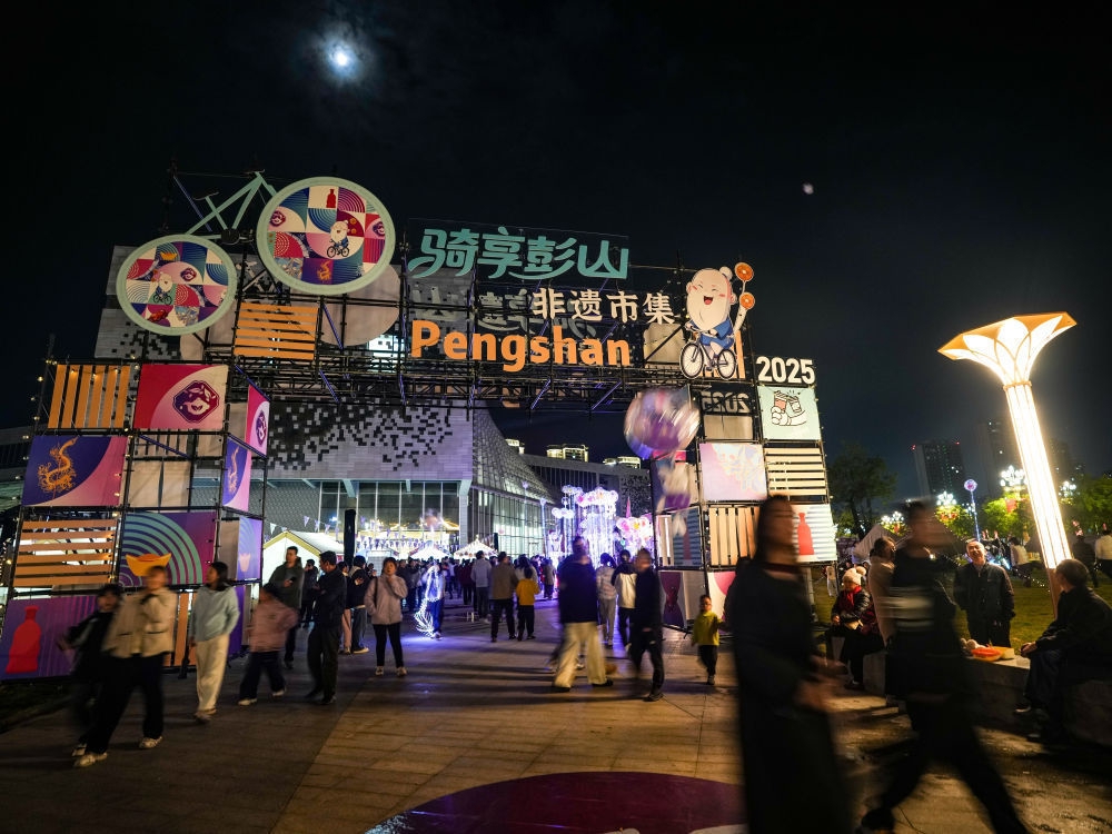 2025年11月1日晚,2025中国公路自行车公开赛(眉山彭山站)开赛前夜,游客在四川省眉山市彭山区的非遗市集和主题音乐会等多元文化活动中享受周末时光。近年来,彭山区积极推进文体旅融合发展,借助赛事开展一系列配套文化惠民活动,实现“一场赛事,多重体验”的综合经济社会效益。