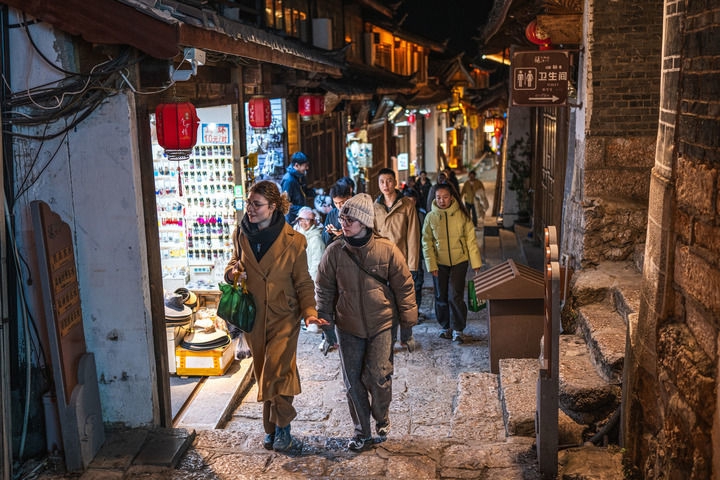 2026年1月12日,游客在丽江古城游玩。新华社记者 王冠森 摄