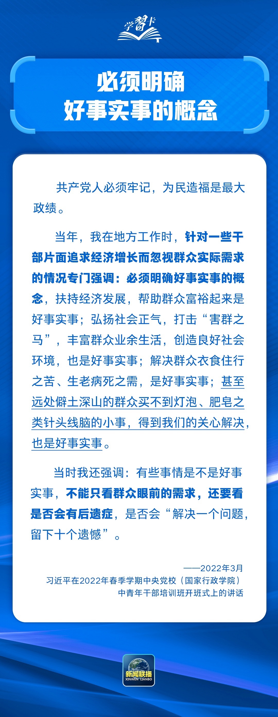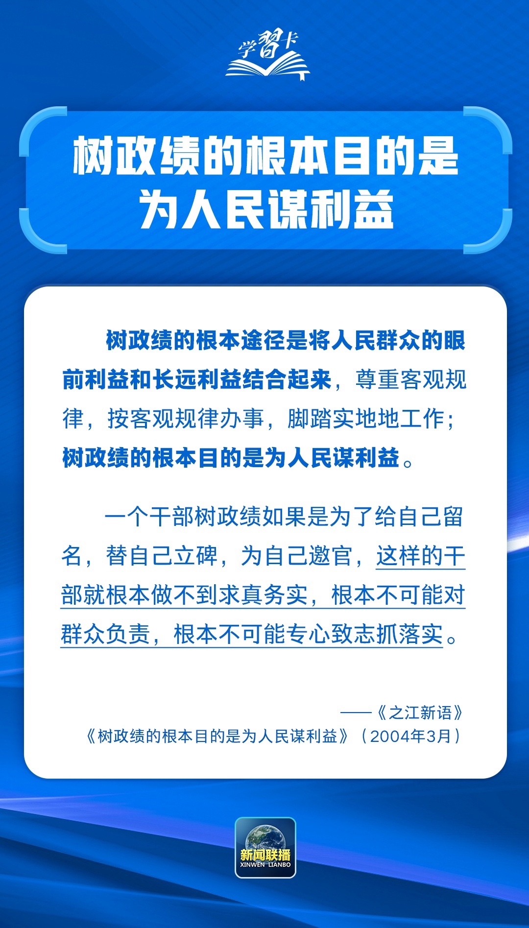 “政绩观问题是一个根本性问题,关乎立党为公、执政为民。”党的十八大以来,习近平总书记反复强调要树立和践行正确政绩观,近期又在多次重要讲话中特别加以强调,为开展学习教育指明了方向、提供了重要遵循。