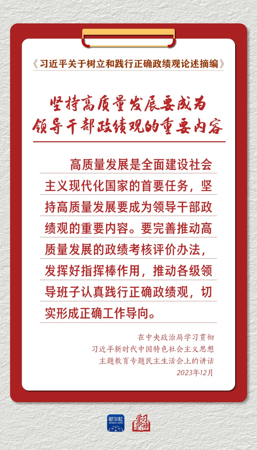 学习新语丨以正确政绩观推动高质量发展