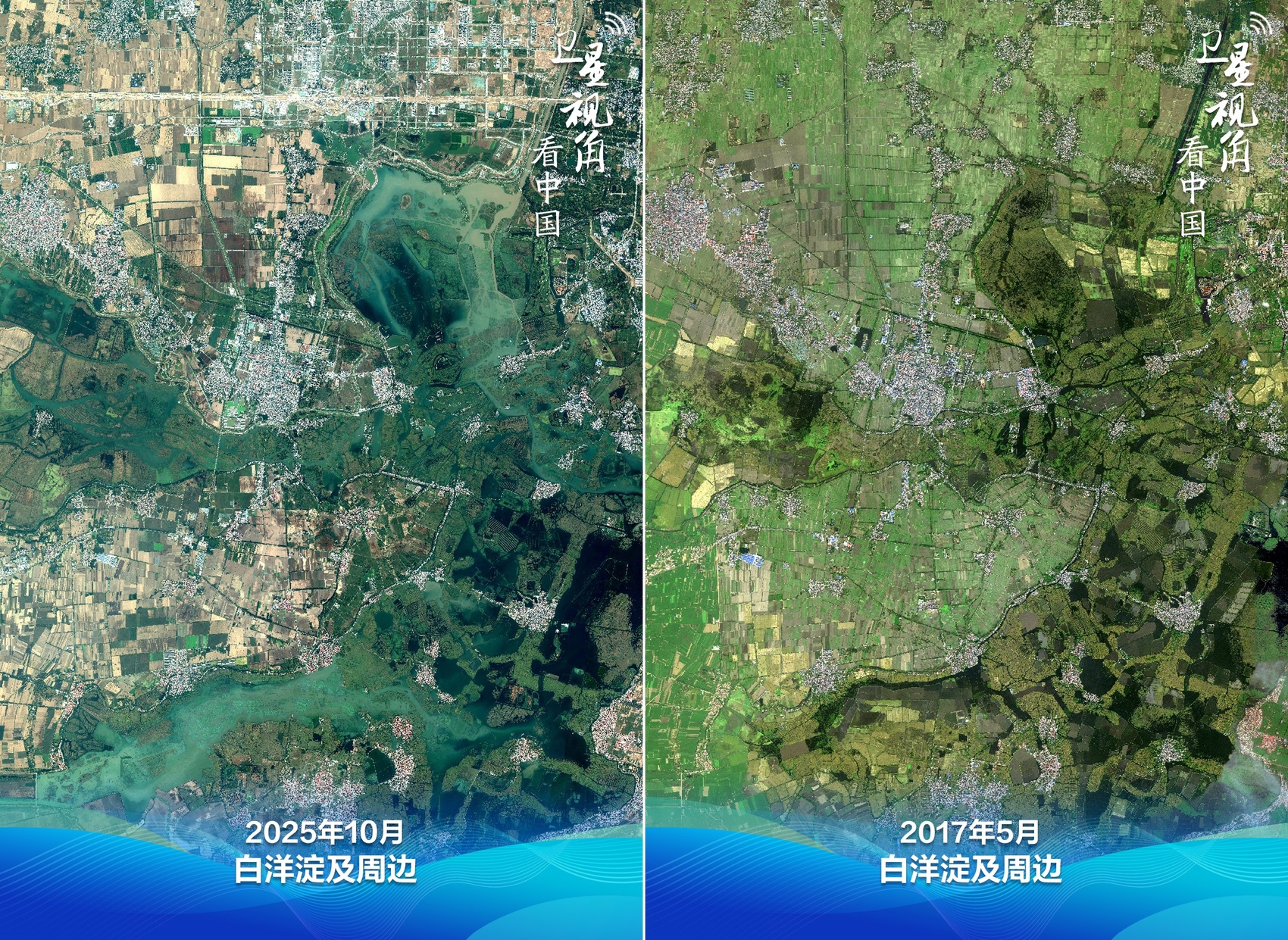如今,被称为“华北之肾”的白洋淀,水质稳定保持在Ⅲ类标准,野生鸟类增至296种,较新区设立前增加90种,蓝绿交织正成为雄安新区的生态底色。