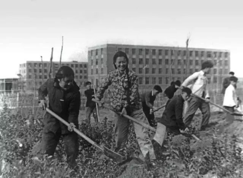 迁校初期,师生们进行校园绿化(图片来源:西安交通大学新闻网)