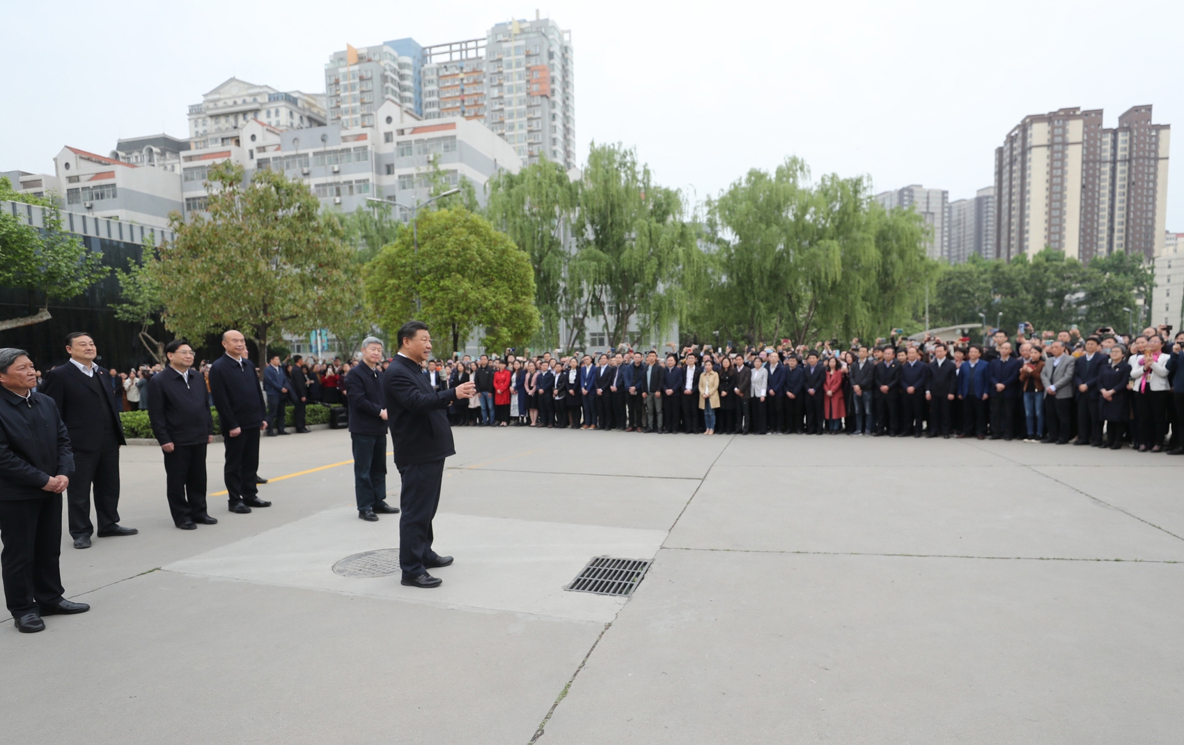 2020年4月22日,习近平总书记在西安考察调研。这是习近平总书记在西安交通大学考察。新华社记者 鞠鹏 摄