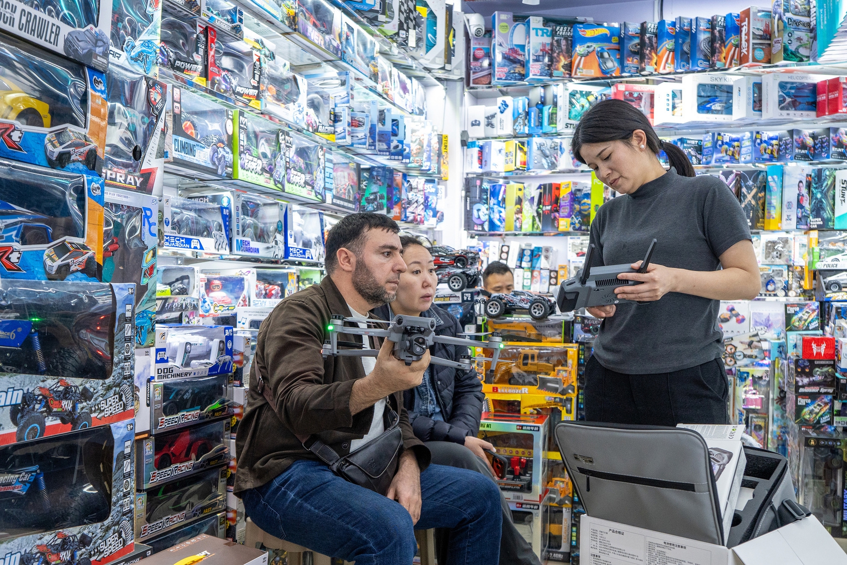 2026年4月1日,外商在浙江义乌国际商贸城洽谈采购小商品。