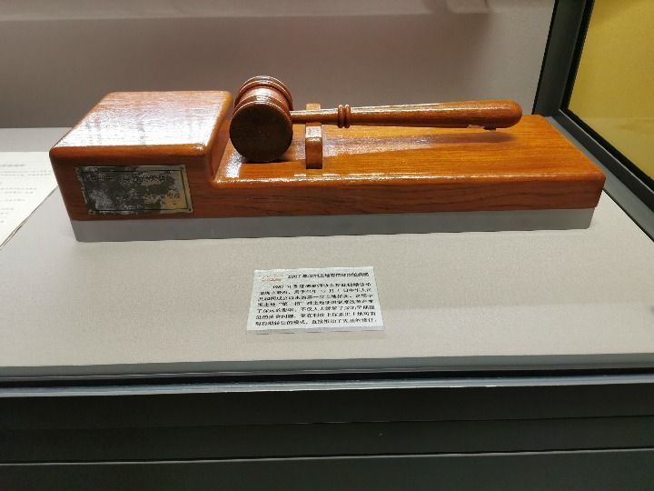 1987年深圳土地有偿使用的拍卖槌。 新华社记者孙飞摄