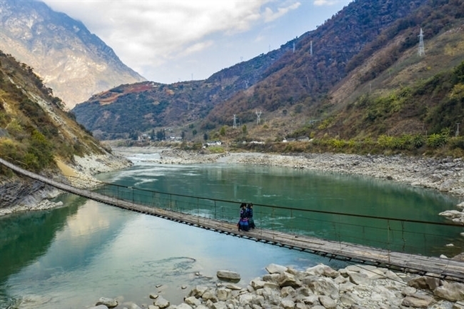 日前,当地村民以怀旧心情走在几近弃用的铁索桥上,他们希望保留这悬浮在雅砻江上的历史见证。(新华社记者沈伯韩摄)