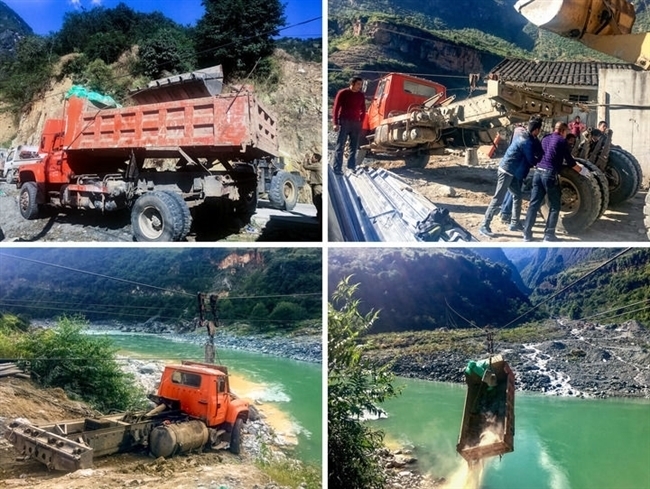 施工方先用小船把水泥等材料运到江对岸,但几吨重的施工工程车如何运过江?最后想出了个绝妙的主意——先在雅砻江上架起溜索,把工程车大卸三块,一块一块用溜索运到江对岸……时至今日,村民忘不了工程车重新组装好后,在村里轰响启动的那一瞬,这可是机动车“开天辟地”第一次进村。
