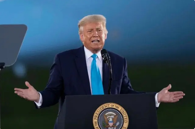 2020年9月3日美国时任总统特朗普在美国宾夕法尼亚州拉特罗布参加竞选集会的资料照片。图据新华社