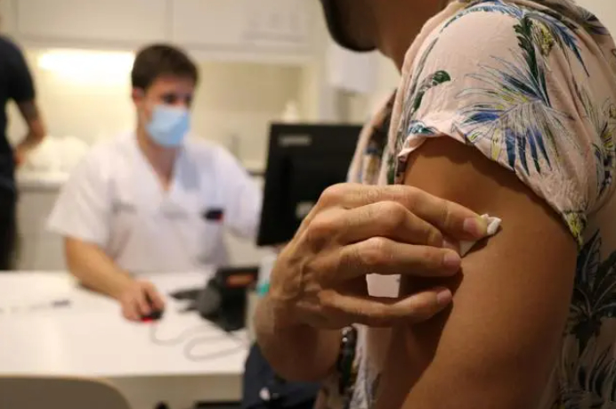 2022年8月3日,一名男子在西班牙巴塞罗那一家诊所内接种猴痘疫苗。图据新华社