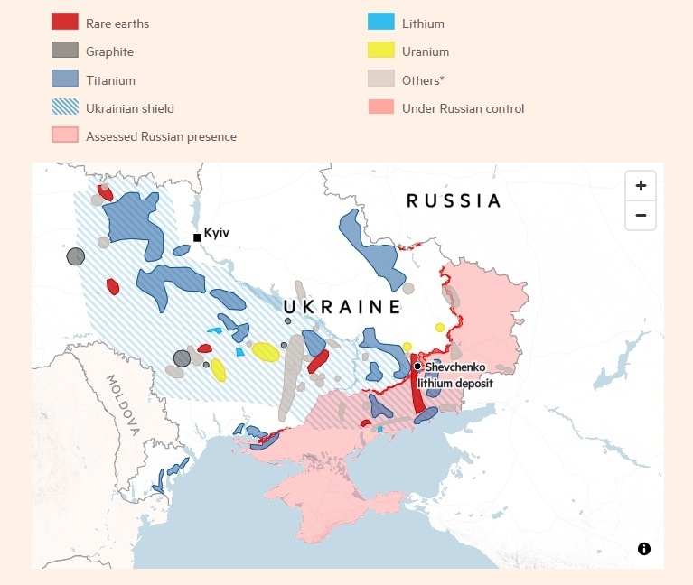 乌克兰矿产资源分布。《金融时报》制图