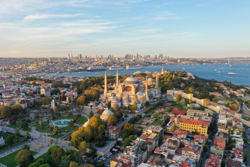 这是2024年10月8日拍摄的土耳其伊斯坦布尔历史半岛部分景象(无人机照片)。新华社记者 刘磊 摄