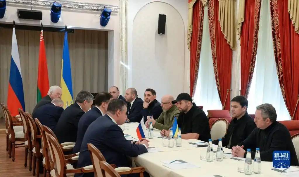2022年2月28日在白俄罗斯戈梅利州拍摄的谈判现场。新华社/卫星社