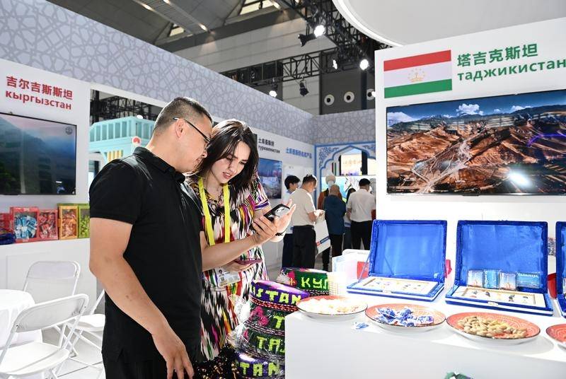 2025年5月21日,在第九届丝绸之路国际博览会暨中国东西部合作与投资贸易洽谈会丝路优品展上,参观者了解塔吉克斯坦商品。新华社记者 李一博 摄