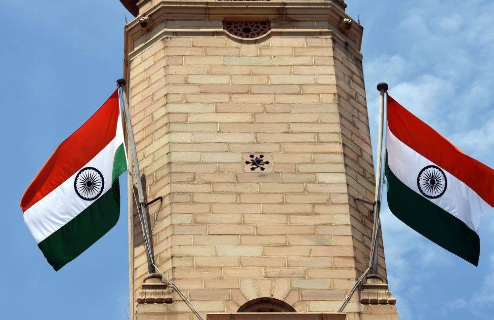 这是2019年8月8日在印度首都新德里拍摄的印度国旗。新华社记者 张迺杰 摄