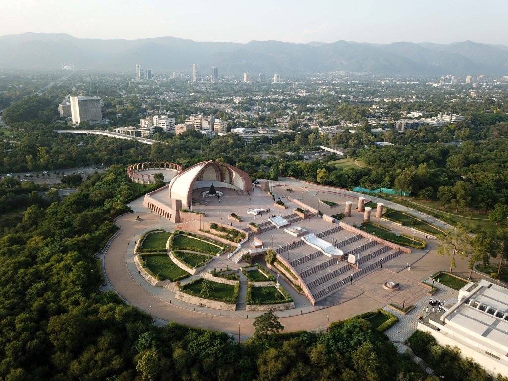 这是在巴基斯坦首都伊斯兰堡拍摄的标志性建筑——巴基斯坦纪念碑(无人机照片,2024年10月8日摄)。新华社发(艾哈迈德·卡迈勒摄)