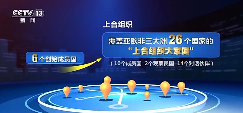 上合组织成立于2001年6月15日,地点在上海,是首个由中国参与创建并以中国城市命名的区域性国际组织。如今上合组织已有26国参与,在50多个领域开展合作,经济总量接近30万亿美元,是世界最大的区域组织,国际影响力那是“杠杠的”。