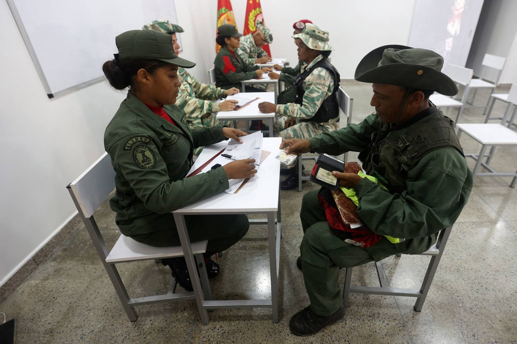当地时间8月23日,委内瑞拉民众在首都加拉加斯报名加入民兵组织。图据新华社/法新