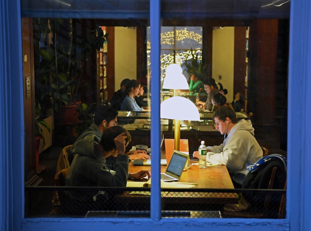 哥伦比亚大学学生在图书馆自习。新华社记者 李睿 摄