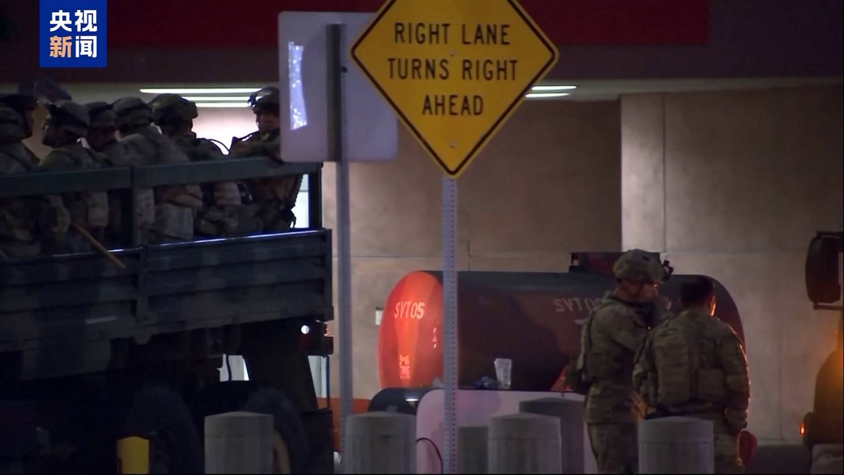 当地时间6月8日,首批美国国民警卫队进驻洛杉矶。图据央视新闻