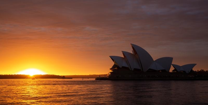 8月27日,清晨的澳大利亚悉尼歌剧院日出景色。新华社记者 马平 摄